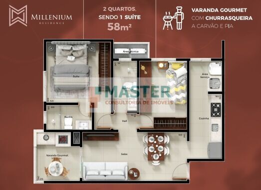 - Sala em 2 ambientes;