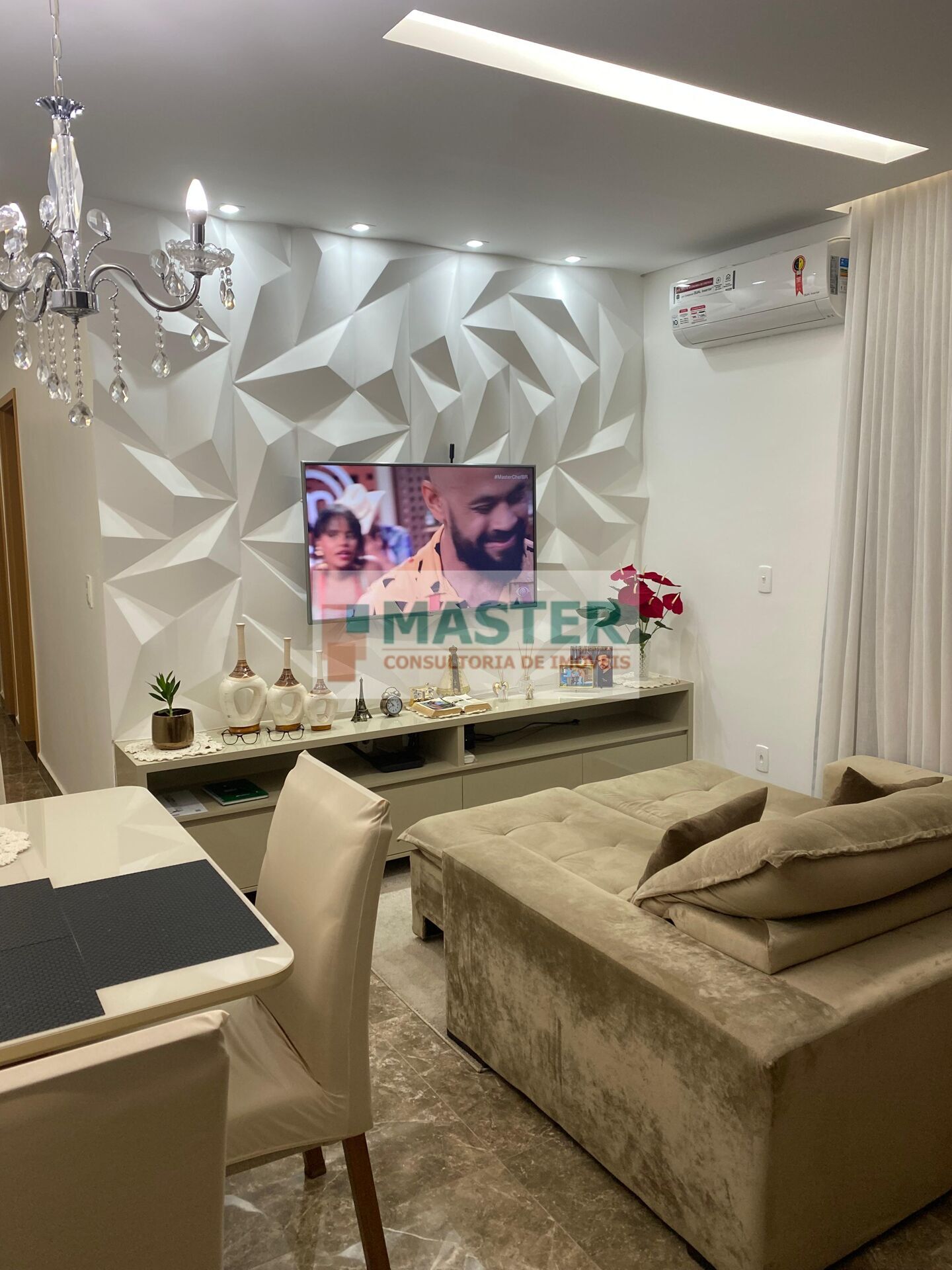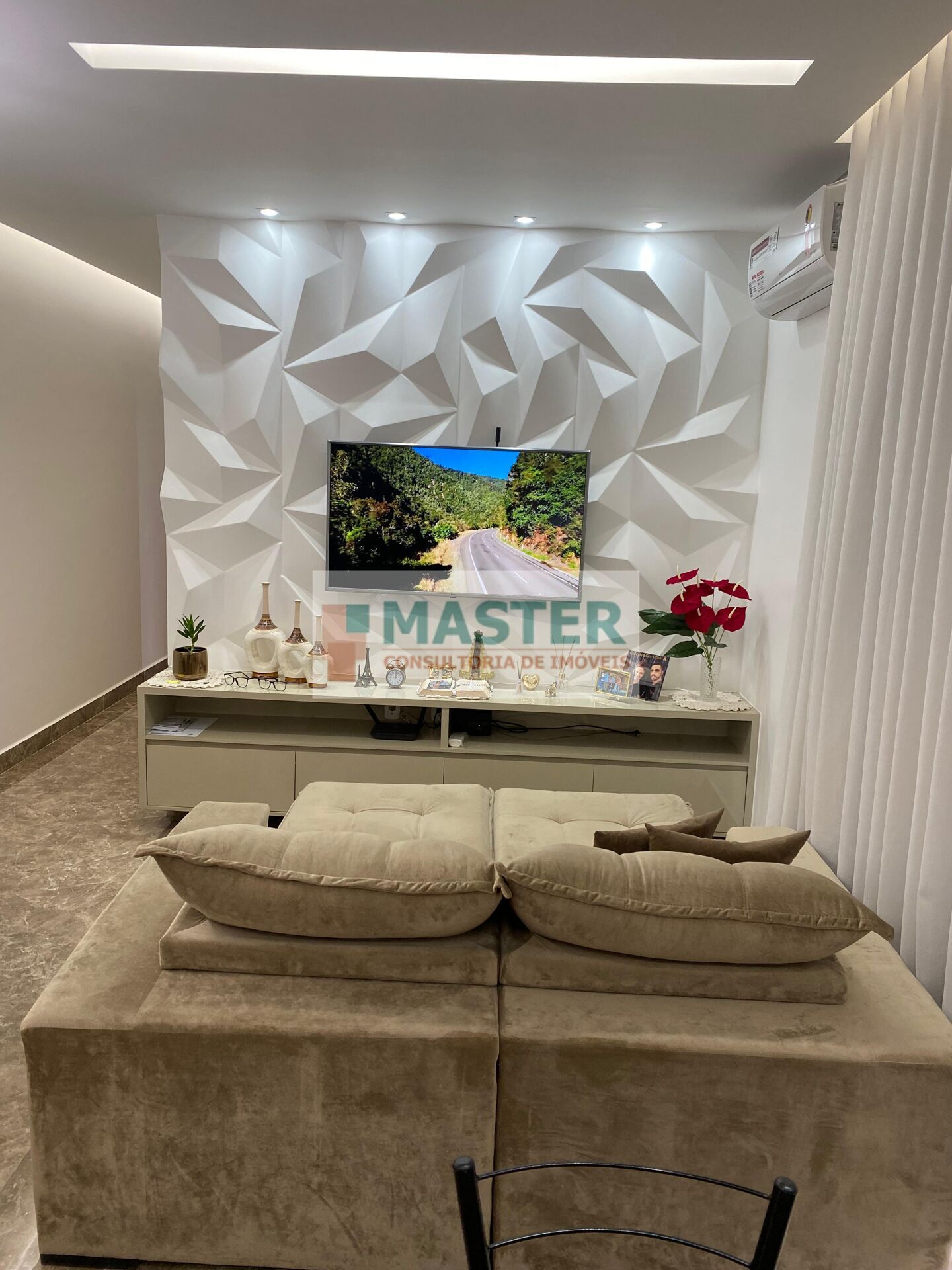 Teto em gesso nos quartos e cozinha, ponto de ar-condicionado na sala e no quarto de casal,